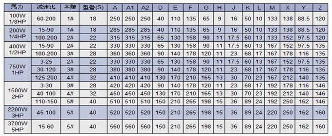 下圖為城邦二代三相齒輪減速馬達(dá)的詳細(xì)參數(shù):