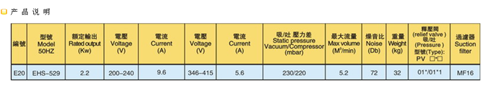 單段鼓風機EHS529/629/639特點: