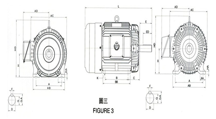 群策臥式三相普通電機圖紙及參數: